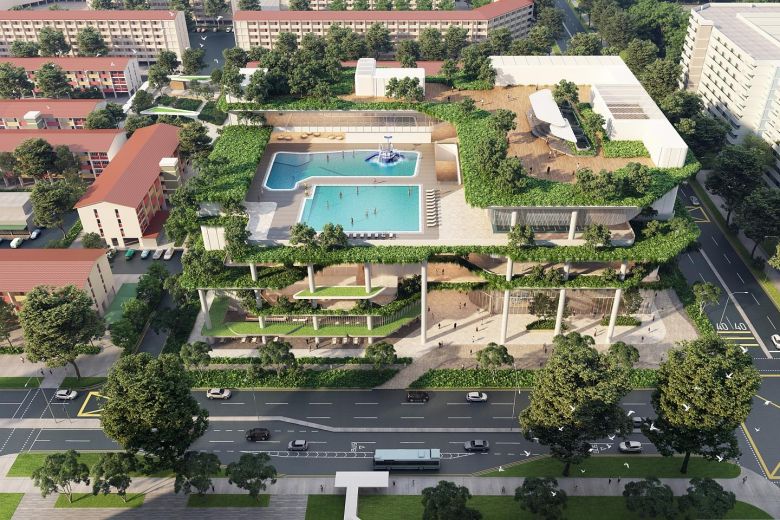 An artist’s impression of Chill @ Chong Pang, which will include swimming pools, a gym, an upgraded hawker centre and a community club. PHOTO: SINGAPORE LAND AUTHORITY