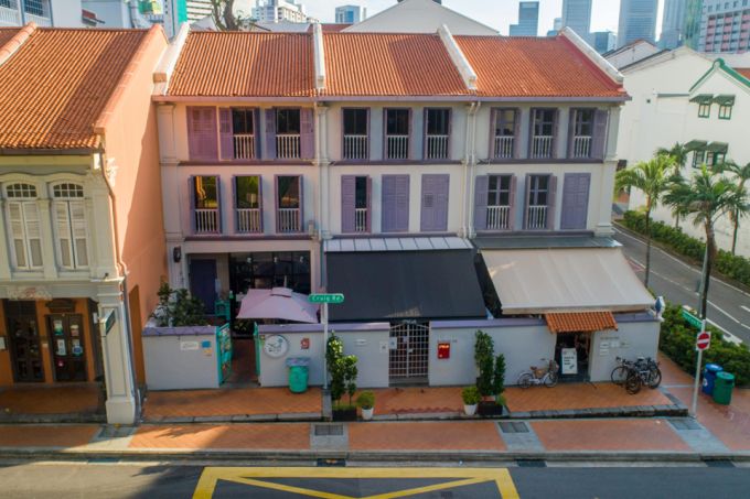 The shophouses are on three separate land lots, with balance lease terms of about 67 years. The ground floor is fully leased to three restaurants. On the upper levels, four of the six office units are leased.