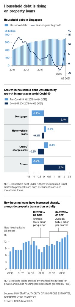 Singapore households have amassed a larger pile of debt than they had before Covid-19 struck, thanks to a buoyant property market.